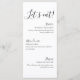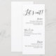 Introduce your wedding meal in style with this elegant minimalist wedding menu card featuring the playful phrase “Let’s Eat!” in graceful script lettering. Designed with a refined balance of modern typography and flowing calligraphy, this menu creates a sophisticated presentation for your reception dining experience.