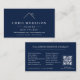 Modern Roofer Navy Blue Silver QR Code Visitenkarte