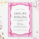 Feiern Sie stilvoll mit dieser Geburtstagseinladung mit einem handgezeichnet rosa Bugrahmen auf einem rosa Aquarellhintergrund. Verändern Sie die dunkelgraue Typografie ganz einfach in den Anzug des besonderen Festzeitalters!