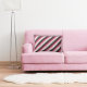 Dieses farbenfrohe Kissen aus Lendenwirbel weist ein gürtelförmiges gestreiftes Muster in Weiß-, Rosa- und Dunkeltönen auf.