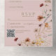 Modern rosa Wildblume Bouquet QR Code All In One Einladung