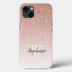 Fügen Sie Ihrem Handy eine verglaste Touch mit diesem schicken Handy-Gehäuse, mit einem Hintergrund Muster der Rose gold ombre Imitate Glitzer. Personalisieren Sie es mit Ihrem ersten Schriftart in einer weißen Serif und ihrem Namen in einem handgeschriebenen Pinselskript.