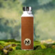 Dieses moderne Design der Wasserflasche zeichnet sich durch einen braunen Lederhintergrund aus. Ihr Monogramm-Initial in einem goldgebürsteten Metallemblem in klassischer Blocktypografie sorgt für ein schlichtes und luxuriöses Aussehen.