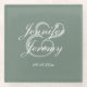 Dieser Untersetzer aus Hochzeitsglas zeichnet sich durch ein modernes und minimalistisches, weißes Kalligrafieschrift auf einem schlichten, grünen Hintergrund aus. Personalisieren Sie mit Ihren Namen und Hochzeitstermin. Herzlichen Glückwunsch für Ihre Hochzeit und Ehe! Entworfen von Susan Coffey.