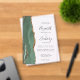 Der links Rand dieser eleganten, modernen Hochzeitseinladung besticht durch eine schlaue, grüne Aquarellgrenze, die mit Imitaten mit Goldmedaille bestickt ist. Der anpassbare Text kombiniert handschriftlich, kopperplate und kursiv Schriftart in Holzkohlegrau auf einem klaren Hintergrund.