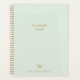 Modern Sage Green Gold Script Monogram Planer. Modernes, elegantes Monogramm-Design mit handgeschriebener, minimalistischer Schrifttyp-Schrift und serifenloser Blocktypografie auf elegantem pastellfarbenem Sage Green Hintergrund. Das Monogramm und der Name können leicht personalisiert werden.