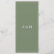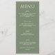 Modern and simple wedding menu in sage green. Clean and easy-to-read design that matches a minimalist modern wedding theme. Includes course description - starter, main course, desert and drinks information which is easy to edit and personalize.