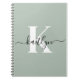 Modern Sage Green Script Monogram Notizblock