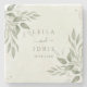 The centerpiece features a romantic, fine-line script for your names or monogram, surrounded by airy sage foliage that feels fresh and timeless. Whether placed at each setting for a mountain-view reception or gifted as a boxed set for your bridal party, these coasters bring a high-end, botanical touch to any home. The natural stone material beautifully absorbs moisture while the elegant greenery ensures your wedding style remains the focal point long after the last dance.