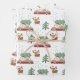 Mit diesem niedlichen, modernen Weihnachtsmann, der Geschenke in einer Limousine inmitten von grünen Bäumen und Schnee serviert, erleben Sie den festlichen Geist. Sicherlich ein Verpackungspapier, das Ihre Geschenke für das kleine extra besondere in dieser Feriensaison machen wird.