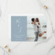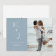 Verkünden Sie Ihren Hochzeitstag mit Ihrem phantastischen Foto vor einem pulverblauen Hintergrund zusammen mit Ihren Initialen in einem skurrilen, modernen Kalligraphieskript. Ideal Save the Date für Hochzeiten, Verlobungen, Jubiläen und andere Veranstaltungen.