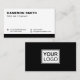 Weiße oder benutzerdefinierte Farbe, moderne, berufliche Visitenkarte mit benutzerdefiniertem Farbrahmen und Vorlagenfeldern für Name, Firmenname/Firmentitel, Logo (Foto oder andere Grafik) und Kontaktinformationen. Ändern Sie Hintergrund- und Randfarbe, verschieben und verändern Sie Elemente mit dem Anpassungstool.