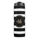 Modern Schwarz-weiß Strip Script Monogram Name Thermosbecher