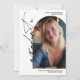 A bold, fashion-forward graduation design featuring a black handwritten script layered over a white backdrop. The arched photo window creates a modern editorial frame, giving the front a statement look that feels confident and current. The reverse side includes a multi-photo collage layout, perfect for showcasing senior portraits, beach sessions, lifestyle shots, or campus memories. The vibrant pink typography contrasts beautifully against the clean background, making this design ideal for graduates who love standout color and contemporary style.