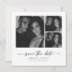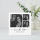 Share your special moment with a save-the-date that feels simple and meaningful. This black and white three-photo design lets your favorite memories shine, while the soft script adds a gentle, elegant touch. The clean layout keeps everything easy to read and beautifully balanced. It is a lovely way to announce your wedding in a style that feels personal, timeless, and truly yours.