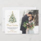 Moderne, elegante Script Weihnachtsbaum 2 Foto Weihnachtskarten. Diese festliche, schlichte Weihnachtskarte aus zwei Fotos zeigt einen Aquarellweih mit Goldbällen und Konfetti, einen "Frohen Weihnachtsgrüßtext", der in einer schönen handgeschriebenen Kalligraphie-Swash-Schwanz-Schriftart in Gold und Weiß geschrieben ist. Diese Weihnachtskarten des Fotos sind eine tolle Gelegenheit, die Liebsten daran zu erinnern, dass sie sich in dieser Winterferien-Jahreszeit an sie erinnern.