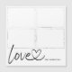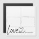 Collage photo moderne avec "amour" avec coeur connecté en script et carte magnétique de nom de famille.