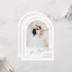 Minimalist the night before rehearsal dinner invitation features modern script and chic arch frame with couple's photo in black and white, elegant and simple, great for modern classy wedding.