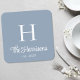 Modern Script Monogram Dusty Blue Rechteckiger Pappuntersetzer