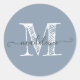 Modern Script Name Monogram Initial Dusty Blue Runder Aufkleber