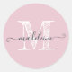 Modern Script Name Monogram Initial Parfait Pink Runder Aufkleber