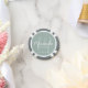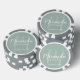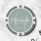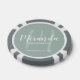 Fügen Sie Ihrer Hochzeit eine persönliche Touch mit personalisierten Poker-Chips für Bräute hinzu. Dieses Design zeichnet sich durch den personalisierten Namen einer Brautjungfrau aus, die im Stil eines modernen Schriftartes mit weißer Schrift und Monogramm im modernen, schlanken Stil eines modernen Drehbuch-Schriftartes als Hintergrund mit dem Titel und dem Hochzeitdatum in weißem, modernen Sans Serif Schriftart Stil auf dem Weisen grünen Hintergrund. Auch perfekt für Trauzeugin, Mutter der Braut und mehr.