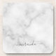 Modern Script Personalisiert Name White Marble Getränkeuntersetzer