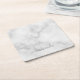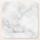 Modern Script Personalisiert Name White Marble Paper Coastermit personalisiertem Namen in grauem, modernem Skript Schriftart Stil auf weißem Marmor Hintergrund.