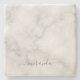 Modern Script Personalisiert Name White Marble Steinuntersetzer