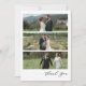 Show your appreciation with our Modern Script Photo Wedding Thank You Card, a personalized and stylish way to thank your guests after your wedding day. Featuring a clean, modern script “Thank You” on the front, this elegant wedding thank you card highlights your favorite couple photo, along with your names and wedding date for a meaningful, custom touch. The back of the card includes a heartfelt wedding thank you message to your guests, paired with an additional couple photo, creating a beautiful keepsake they’ll treasure. Perfect for thanking guests for attending your wedding and for their thoughtful gifts, this personalized photo wedding thank you card combines modern design, simplicity, and timeless elegance. Ideal for couples seeking custom wedding thank you cards, photo wedding stationery, or modern wedding stationery, this design is perfect for newlyweds who want a polished and memorable way to express their gratitude.