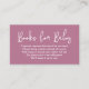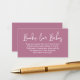 Elevate your baby shower with our "Modern Script pink Baby Shower Book Request Enclosure Card". This elegant card features a contemporary script font in soothing pink , adding a touch of sophistication to your event. Encourage guests to bring books instead of cards by including this enclosure card with your invitations.