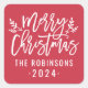 Stilvolle Weihnachtspensticker mit weißem Schriftzeichen und Akzenten von Ästen mit heiligen Blätter und Beeren. Personalisieren Sie mit individuelle Name / Familie und Jahrestext. Die rot-farbige Hintergrundfarbe kann geändert werden.