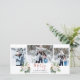 Wählen Sie unsere schöne Urlaubsfotokarte, um Freunden und Familie eine schöne Urlaubssaison zu wünschen. Das minimalistische und moderne Design verfügt über eine Collage von drei anpassbaren Fotos auf weißem Hintergrund und rotem Schriftzeichen. Zwei Aquarellbilder von Weihnachtsliedern schmücken die Karte. Drücken Sie die Taste Personalisierung, um es wirklich einzigartig zu machen. Sie werden sich freuen!