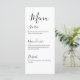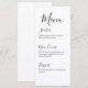 Add a refined touch to your reception tables with this minimalist wedding menu card featuring an elegant black-and-white design and romantic script typography. The stylish “Menu” heading paired with delicate heart accents creates a sophisticated yet warm presentation for your wedding meal.