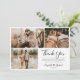 Elegantes, Minimalistisches, handgeschriebenes Foto Hochzeit Dankeschön Karte. Stilvolle Hochzeitskartentafel mit drei (3) Foto vorne und einem vollen Foto auf der Rückseite. Mit dem Text "Danke" in einer Wirblen Hand Schrift Schriftart mit Schriftzeichen in schwarz auf weißem Hintergrund. Personalisieren Sie mit Ihrem Namen und danke Ihnen Nachricht. Kleines Herz zwischen den Namen. Wenn Sie lieber Ihre Notiz handschreiben, löschen Sie einfach den Beispieltext, um mehr Platz zu machen. Wenn Sie Hilfe oder Match-Artikel benötigen, kontaktieren Sie mich bitte!