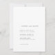 A timeless black-and-white palette creates an immediate sense of elegance. The front features a sophisticated serif typography layout, thoughtfully composed with generous white space to deliver a clean, editorial look. On the back, your favorite engagement photo is beautifully framed by a crisp white border, transforming the invitation into a cherished keepsake that tells your love story.