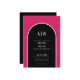 Lebhafte Magenta Arch Monogram Einladung zur Hochzeit. Machen Sie eine kühne Aussage mit dieser beeindruckenden Hochzeitseinladung mit einem lebendigen magentinrosa Hintergrund und einem eleganten schwarzen Bogen-Design. Die Hochzeitsdetails werden in knalligen, weißen Schriftart hervorgehoben, wodurch ein scharfer und moderner Kontrast entsteht. Auf der Rückseite zeigt ein einfaches und stilvolles Monogramm die Initialen des Paares an und fügt eine personalisierte Touch hinzu. Dieses Design verbindet lebendige Energie mit minimalistischer Eleganz, perfekt für zeitgenössische Hochzeiten mit einer lustigen, kühlen Drehung. Das zweite subtile "Bogen"-Detail kann auf Ihre Farbpalette abgestimmt werden, sodass Sie flexibel eine extra Akzent Linie hinzufügen können, falls gewünscht. Diese Einladung ist vollständig anpassbar und erlaubt es Ihnen, die Farben, den Text und das Layout an Ihre Vision anzupassen. Dieses einzigartige und lebendige Design ist als gedruckte Karte oder als digitaler Download erhältlich und eignet sich hervorragend zum Set eines unvergesslichen Tages.