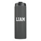 Moderne, einfache und personalisierte Schulwasserflasche oder Reisetug auf Grau mit weißer Typografie. Ein wesentlicher Rückgriff auf das Schulangebot für Kinder und Lehrer gleichermaßen. Umweltfreundlich, verwenden Sie es jeden Tag hydratisiert bleibe. Wählen Sie eine Farbe und personalisieren Sie sie mit Ihrem Namen.