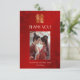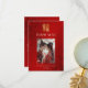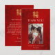 This Chinese wedding thank you card features a gold double happiness sign and "thank you" words in an elegant font on a red shimmering background. With a custom wedding thank you text, your photo and your names and wedding date.