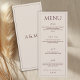 Modern and simple wedding menu in soft tan. Clean and easy-to-read design that matches a minimalist modern wedding theme. Includes course description - starter, main course, desert and drinks information which is easy to edit and personalize.