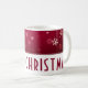 Modern Snowflake Red Pattern Frohe Weihnachtskaffee Tasse. Diese moderne Weihnachtszeit-Tasse ist mit einem fröhlichen Weihnachtswunsch und festlichen roten Schneeflockenmuster versehen.