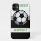Trendy iPhone 5 Gehäuse mit einem schwarzen, grauen, weißen und verblassten grünen Farbschema und einem großen illustrierten Fußball. Der Fall ist mit Ihrem Namen oder benutzerdefinierten Text personalisiert.