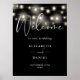 This elegant black and white wedding welcome sign, featuring pretty string lights, can be personalized with your information in chic typography. Designed by Thisisnotme©