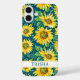 Customize this colorful modern sunflowers on teal painting iPhone 16 plus case with your your name in a trendy modern CAP font in teal on white. It's so beautiful and happy!