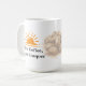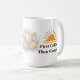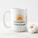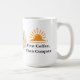 "First Coffee, Then Conquer." Minimalist mug with a rising sun. Pastel background, sans-serif typography. Perfect for coffee lovers, office, or as a thoughtful gift.