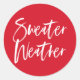 Modern Sweater Weather Script Red Holiday Runder Aufkleber