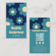 Modern Teal Blue Retro Floral Pattern with QR Code Visitenkarte