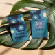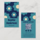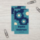 Modern Teal Blue Retro Floral Pattern with QR Code Visitenkarte