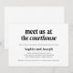 This ultra modern, black and white micro-wedding invitation features bold typography with a mix of standard and italic serif text. The invite says "meet us at the courthouse," and is perfect for an intimate courthouse wedding or elopement. A simple and elegant look that will work perfectly with your modern wedding style.