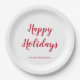Modern Thick Red Script Happy Holidays Weihnachten Pappteller